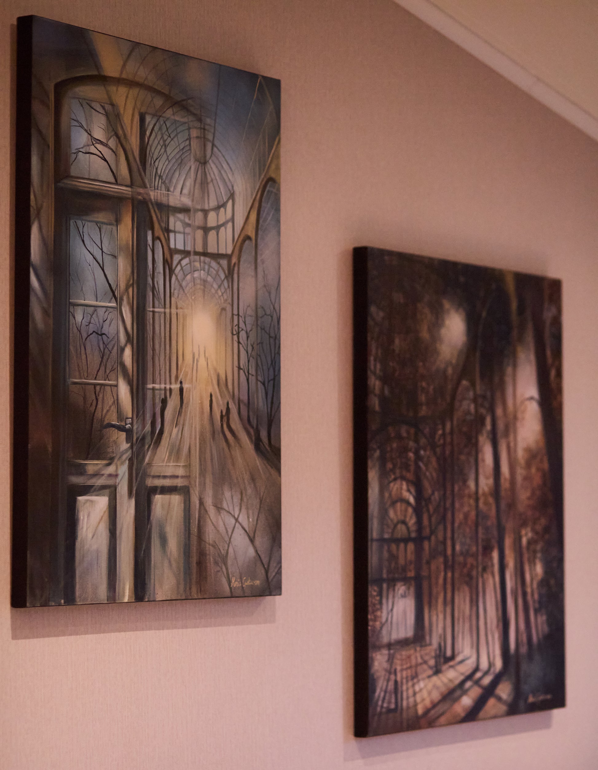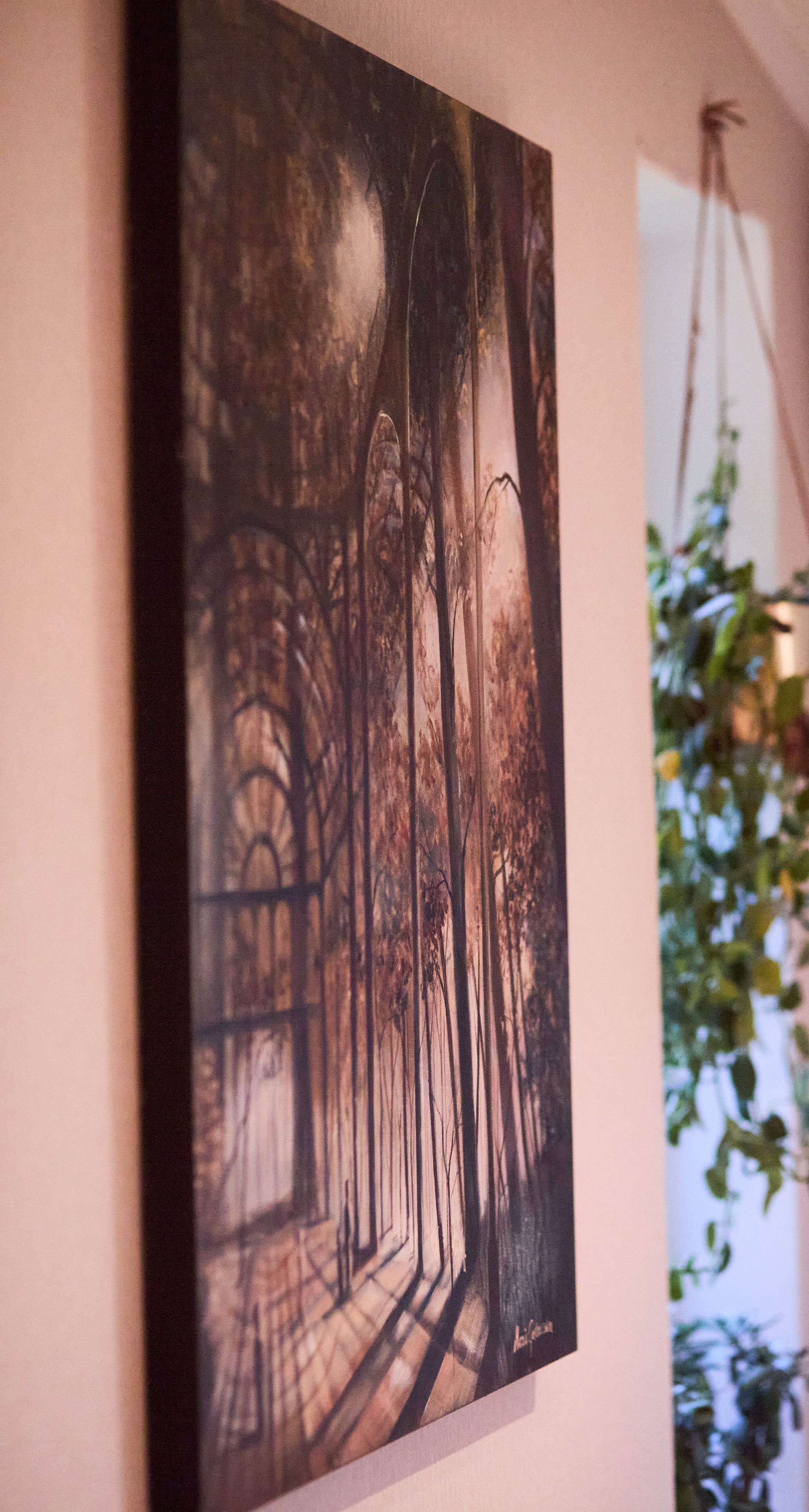 It’s a dreamlike place – maybe real, maybe internal – but filled with presence. Light moves gently between leaves and vaults, and the figures within seem to wander through an old memory.